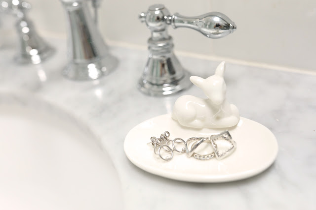 I’m the kind of person who tends to lose things that don’t have a “home.” I’ve literally lost my phone while it was in my hand at least half a dozen times because apparently my hand is not its home. In any case, one trick that helps me is to create a resting spot for important items like having a hook for my most used purse and a bowl for keys right by the door. I also have a jewelry dish for rings by the bathroom sink which keeps my pieces in pristine condition but also makes the likelihood of staying well-accessorized an easy process. If it’s easy to see, it’s less likely to flee.*