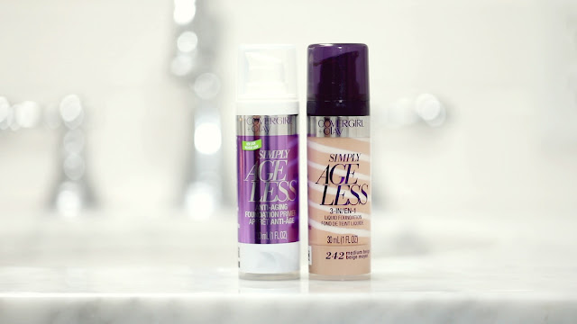 I’m starting off with the COVERGIRL + Olay Simply Ageless Anti-Aging Foundation Primer which has a lovely creamy texture and applying it to a clean, bare face. This primer not only helps foundation to last longer and look better, but it also includes anti-aging ingredients that help condition skin over time which is always a blessing for my sleep-deprived self!