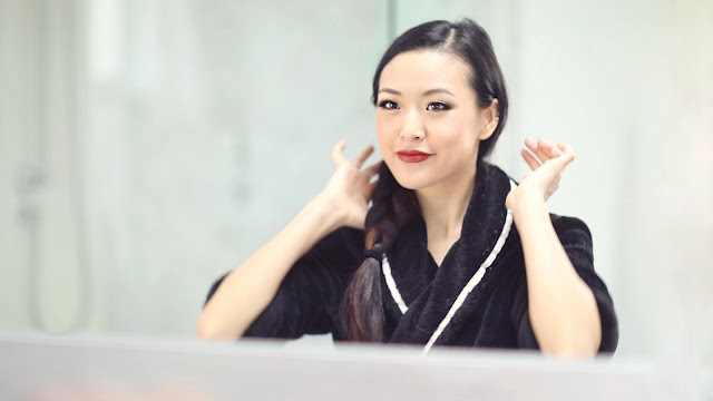 To finish the look I applied a contoured rose-gold eye and matching rosy cheeks with a deep red lip to bring out the sophisticated glam feeling I was going for.